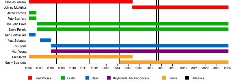 On May 15, 2015, David Journeaux posted on the band's Facebook page announcing his departure from the band. Three days later the band announced Johnny McArthur as their new vocalist and Kenny Saunders as their new drummer, replacing Mike Ieradi who left the band to join Protest the Hero.