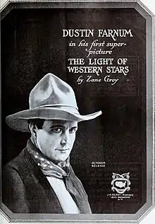 The Light of the Western Stars is a lost[1] 1918 American silent Western film starring Dustin Farnum and Winifred Kingston. Charles Swickard directed.[2] It is based on the 1914 novel by Zane Grey.
