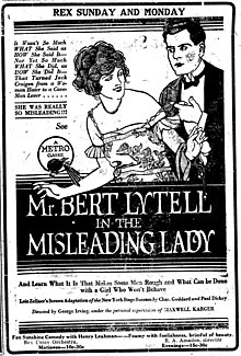 The Misleading Lady is a 1920 American silent comedy film. Co-directed by George Irving and George W. Terwilliger, the film stars Bert Lytell, Lucy Cotton, and Frank Currier. It was released on December 20, 1920.