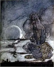 ![]() The Moon asks her mother, illustration by Arthur Rackham. | |