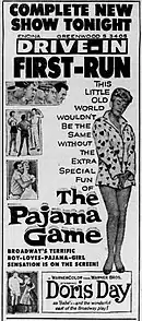 - ↑ Crowther, Bosley (30 August 1957). "Movie Review - - Screen: 'Pajama Game' at Music Hall; Stage Hit Re-Created as Tuneful Film". The New York Times. Retrieved 17 April 2016.