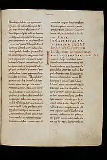 The Passion of Saints Perpetua and Felicity (Latin: Passio sanctarum Perpetuae et Felicitatis) is a diary by Vibia Perpetua describing her imprisonment as a Christian in 203, completed after her death by a redactor.[1] It is one of the oldest and most notable early Christian texts.