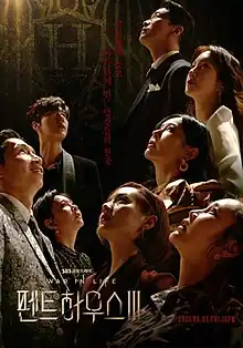The Penthouse: War in Life[5] (Korean: 펜트하우스) is a South Korean television series starring Lee Ji-ah, Kim So-yeon, Eugene,[6] Um Ki-joon, Yoon Jong-hoon, and Park Eun-seok.[7][8] The series, directed by Joo Dong-min and written by Kim Soon-ok,[9] spins the story of a real estate and education war, a desire to be number one. It depicts the solidarity and revenge of women who turned to evil to protect themselves and their children.[10][11] It premiered on SBS TV on October 26, 2020.[12]