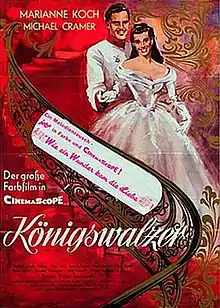 The Royal Waltz (German: Königswalzer) is a 1955 West German musical film romance film directed by Victor Tourjansky starring Marianne Koch, Michael Cramer and Linda Geiser.[1] It is a remake of the 1935 film of the same name, part of the tradition of operetta films. It was shot at the Bavaria Studios in Munich and the Carlton Studios in the same city. Location shooting took place in Munich's Englischer Garten and Nymphenburg Palace. The film's sets were designed by the art director Hermann Warm.