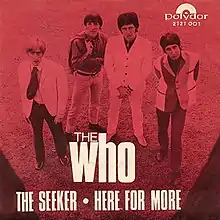 Released in the UK as Track 604036 on 21 March 1970, "The Seeker" reached number 19 in the charts. Released in the US as Decca 7-32670, it hit the Billboard charts on 11 April 1970, eventually peaking at number 44.[5] The B-side, "Here for More", is one of the few Who songs written by lead singer Roger Daltrey.[5]