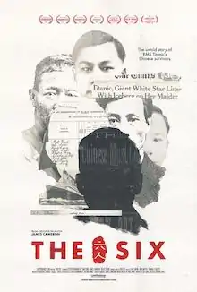 The Six (simplified Chinese: 六人-泰坦尼克上的中国幸存者; traditional Chinese: 六人-鐵達尼上的中國倖存者) is a 2021 documentary film directed by Arthur Jones and produced by Luo Tong.[1][2] The film chronicles the previously untold story of the six Chinese survivors of RMS Titanic, as well as exploring the legacy of Chinese exclusion laws in Canada, the United States, and UK. The film is executive produced by Titanic director James Cameron.[2]