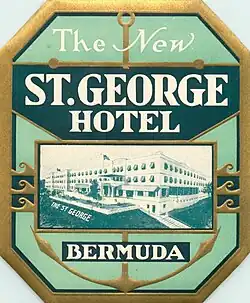 The hotel was constructed on Rose Hill overlooking the town of St. George and was opened in 1906. It had over 100 rooms and served as a winter tourist destination featuring "extensive grounds, private baths, luxurious furnishings, sun parlors, spacious verandas, large ballroom, orchestra, tennis and golf"[1] Next to the hotel was the bar the "Sea Venture" built in the shape of a ship. The hotel was renovated and expanded over the years, including a new wing, and one of the largest indoor swimming pools in Bermuda.[2][3] The hotel had a golf course and a beach club at Achilles Bay.