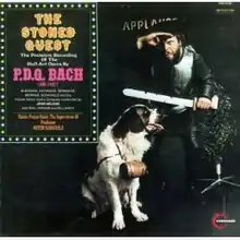 The Stoned Guest is "the premiere recording of the Half-Act Opera by P. D. Q. Bach", the pseudonym used by Peter Schickele for parodic works. It was released on Vanguard Records in 1970. The title is a play on Dargomyzhsky's opera The Stone Guest. The record is a pseudo-radio broadcast hosted by "Milton Host" (parodying Metropolitan Opera commentator Milton Cross) including an appearance by "Paul Henry Lung" (a play on Paul Henry Lang) as a contestant on the intermission game "Opera Whiz" hosted by Schickele.