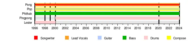 - Pathompong Sombatpiboon (ปฐมพงษ์ สมบัติพิบูลย์): Lead vocalist and Songwriter