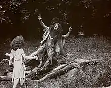 Running at 12 minutes long,[5] intertitles are used to link the short scenes but do not use Shakespeare's own prose. Several elaborate scenes were filmed in the studio which drew on Percy Stow's trick-photography expertise, including where Prospero summons up the tempest, which the BFI describes as being reminiscent of the work of the French film pioneer Georges Méliès.[3] The scene where Ariel disappears and reappears while being chased by Ferdinand was achieved by simply using a jump cut - stopping filming and the actress moving in and out of shot.[2] The scene is comic and emphasises the playful nature of Ariel but is also an effect that could not be replicated on stage giving the film an advantage over the theatre in what Judith Buchanan called an 'ambiguity of styles'.[4][6]