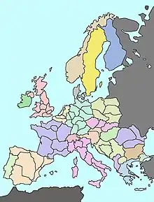 The plan gives a division of Europe in regions. Heineken went for advice on the division to Henk Wesseling, who was Professor of History at the University of Leiden. The designs from the plan were left to the Leiden historian Wim van den Doel.[1] Eurotopia takes ethnic sensitivities into account, to cause the least possible amount of friction.[2] The basic idea is a Europe that is completely composed of states with roughly 5 to 10 million citizens.[3] According to Heineken, the absence of a powerful state would lead to a chance of more stability, equality and peace. While under the motto of small is beautiful, administration in the states could be more efficient.