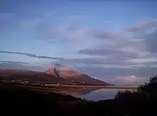 The bedrock of the area consists mainly of Schist and Gneiss, with lowland blanket bog to the south,[6] and machair and rocky seashore to the north and west. The area has a number of lakes, Lough Gall (Loch Geall, 'the bright lake'), Loch na mBreac ('the lake of the trout'), Lough Doo (Loch Dubh, 'the black lake') and Sruhill Lough ('a tidal lake').[7] These lakes have healthy stocks of brown trout,[8] some sea trout, and Lough Gall is also artificially stocked with rainbow trout.