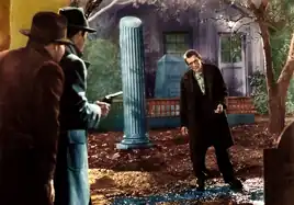 While confronting the last two villains, Ellman is mortally shot. Dr. Beaumont hurries to his death bed, and although pressed to reveal insights about death, Ellman admonishes, "Leave the dead to their maker. The Lord our God is a jealous God" (from Deuteronomy 6:15). As Ellman dies, the two remaining racketeers are killed when their car runs off the road, crashes into an electric pole, and explodes. The film ends with Dr. Beaumont repeating Ellman's warning about a jealous God.