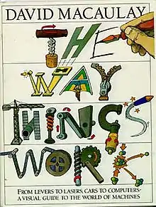 The Way Things Work is a 1988 nonfiction book by David Macaulay with technical text by Neil Ardley. It is a whimsical introduction to everyday machines and the scientific principles behind their operation, describing machines as simple as levers and gears and as complicated as radio telescopes and automatic transmissions. Every page consists primarily of one or more large diagrams describing the operation of the relevant machine. These diagrams are informative but playful, in that most show the machines operated, used upon, or represented by woolly mammoths, and are accompanied by anecdotes from a mysterious inventor of the mammoths' (fictive) role in the operation. The book's concept was later developed into a short-lived animated TV show (produced by Millimages[1] and distributed by Schlessinger Media), a Dorling Kindersley interactive CD-ROM (including a spin-off pinball game, Pinball Science), and a board game. A family "ride" involving animatronics and a 3-D film based on the book was one of the original attractions at the San Francisco Metreon, but closed in 2001.