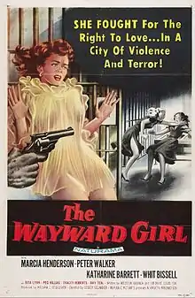 The Wayward Girl is a 1957 American drama film directed by Lesley Selander, written by Houston Branch and Frederick Louis Fox and starring Marcia Henderson, Peter Walker, Katherine Barrett, Whit Bissell, Rita Lynn and Peg Hillias. It was released on September 22, 1957 by Republic Pictures.[1][2][3]