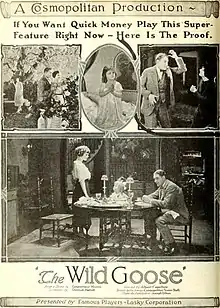 The Wild Goose is a 1921 American silent drama film directed by Albert Capellani and written by Gouverneur Morris. The film stars Mary MacLaren, Holmes Herbert, Dorothy Bernard, Joseph W. Smiley, Norman Kerry, and Rita Rogan. The film was released on June 5, 1921, by Paramount Pictures.[1][2]