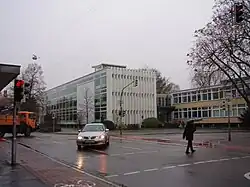 The Theodor-Heuss-Gymnasium Heilbronn is a Gymnasium in the city of Heilbronn. The roots of school date from a Lateinschule (Latin school) of the 15th century. In 1620, the school was converted into a Gymnasium. From 1827 to 1938, it was named the Karlsgymnasium. In 1880 the school moved into a new building that had been built in 1878 on the Karlstraße, where the current school is located. In 1938 the Karlsgymnasium was temporarily merged with a boys' middle school and renamed the Karlsoberschule. During World War II, an Allied air raid on December 4, 1944, destroyed the school building, which was then used as a hospital for wounded people. All teaching aids and most of the historical library that was not outsourced were consumed by the flames. Since 1950, it has been named after its most famous pupil, Theodor Heuss, the first President of the Federal Republic of Germany. Today's school building, built between 1956 and 1958, is a listed cultural monument.