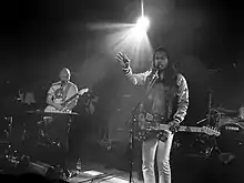 Over the course of the year, the band fluctuated frequently between recording for the new album and touring in support of their previous studio album, The Temper Trap, which included a tour of the Australian east coast,[31] music festival appearances such as Lollapalooza Chile and Wanderland,[32][33] and serving as support for bands such as The Rolling Stones during the final leg of their 50 & Counting Tour.[34] The album was on-pace for a slated early 2014 release, however, production was jolted by guitarist and founding member Lorenzo Sillitto's resignation from the band in late September 2013.[35][36] Citing a need to "try new things" after spending over eight years with the band, his departure was not of ill-faith, with Sillitto describing his time in the band as "an amazing journey, an experience I will never forget and one that changed my life."[37][38] A statement by the band, released later that same day, read in support of Sillitto, calling him "a great friend and a valued and important member of The Temper Trap since he joined in 2006." The statement further read, "his creativity and commitment to the band over the years has been first class and we wish him all the best with the exciting events that are about to come into his life; while we're sad to lose a guitarist, we are not losing a friend."[35] After departing the band peacefully, with "zero drama", Sillitto moved back to the band's hometown of Melbourne, where he got married, started a family, and went on to become the manager of indie rock band Edward R.[7][15] With Sillitto's departure, the band were reduced to four members once again; guitarist Joseph Greer was originally made the permanent fifth member of the band as its keyboardist and secondary guitarist to Sillitto's lead, after the release of Conditions. The workload heavily shifted towards Greer, once he became the band's lead guitarist, though Greer had stated that he had "really enjoyed the challenge", still maintaining a role with keyboard work, despite becoming the lead guitarist. The loss of a guitarist was an initial concern for the band when considering their live performances moving ahead, but they became used to the idea, after adopting the "raw [and] leaner sound" that came with fewer guitars on stage.[39]