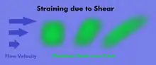 A fluid mechanism that contributes to the formation of thin layers is the straining of fluid by the sheared velocity profile which causes the fluid to tilt and disperse horizontally. If a patch of plankton is located at the fluid being sheared, a thin layer could be formed by the straining of the patch by velocity shear. The four phases of plankton distributions caused by straining are: 1) tilting, 2) shear-thinning, 3) decay, and 4) shear-dispersion (dissipation).[12]