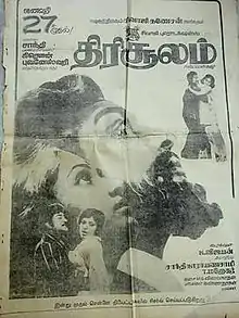 Thirisoolam (transl.Trident) is a 1979 Indian Tamil-language action film directed by K. Vijayan. The film has Sivaji Ganesan playing triple roles. It is a remake of the Kannada film Shankar Guru (1978).[1][2] The film was released on 27 January 1979 and turned out to be a silver jubilee hit, running for over 175 days in theatres eventually becoming the highest grossing Tamil film at the time of its release.[3]