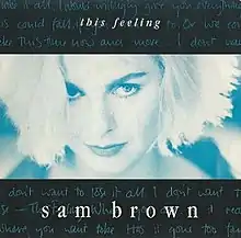 "This Feeling" is a song by the English singer-songwriter Sam Brown, written by Brown and Margo Buchanan. It was released by A&M and appears on her debut studio album, Stop! (1988). It is also one of two songs (along with I'll Be in Love") from the album to feature the guitar work of then Pink Floyd member David Gilmour. "This Feeling" was a top 30 hit in Belgium, while peaking at number 91 on the UK Singles Chart.