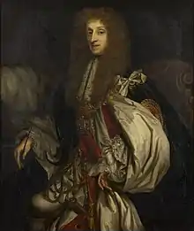 Thomas Osborne, 1st Duke of Leeds, KG (20 February 1632 – 26 July 1712) was an English Tory politician and peer.[1] During the reign of Charles II of England, he was the leading figure in the English government for roughly five years in the mid-1670s. Osborne fell out of favour due to corruption and other scandals. He was impeached and eventually imprisoned in the Tower of London for five years until James II of England was accessed in 1685. In 1688, he was one of the Immortal Seven who invited William of Orange to depose James II during the Glorious Revolution. Osborne was again the leading figure in England's government for a few years in the early 1690s before dying in 1712.[2]