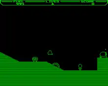 Thrust is a 1986 video game programmed by Jeremy C. Smith (who later co-authored Exile) for the BBC Micro and published by Superior Software.[1][2] The player's aim is to manoeuvre a spaceship by rotating and thrusting, as it flies over a two-dimensional landscape and through caverns. The gameplay of Thrust was heavily inspired by Atari's Gravitar.[3]