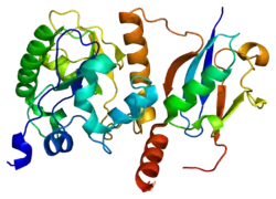 G/T mismatch-specific thymine DNA glycosylase is an enzyme that in humans is encoded by the TDG gene.[4][5][6] Several bacterial proteins have strong sequence homology with this protein.[7]