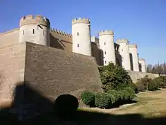Spannocchi undertook various works on the citadel of Aljafería in Zaragoza for which Philip II himself had traced the drawing.[3] Philip II gave him a commission to fortify the palace and transform it into a citadel. He executed the work in 1593, building the fortress of bricks and mortar with cornerstones, and surrounding it by a moat. The two doors were elaborately decorated. After these changes, the Aljafería was used as a military installation until the middle of the 20th century.[8]