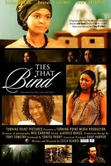 Ties that Bind is a 2011 drama film directed by Leila Djansi and starring Kimberly Elise, Omotola Jalade Ekeinde and Ama K. Abebrese. It was filmed in Ghana. It was nominated in 21 categories at the 2011 Ghana Movie Awards, and won 9 awards. It received 7 nominations at the 8th Africa Movie Academy Awards and eventually won the award for the category Achievement in Screenplay.[2][3]