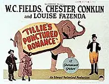 Tillie's Punctured Romance is a lost[1] 1928 American silent circus comedy film starring W. C. Fields as a ringmaster and Louise Fazenda as a runaway. Written by Monte Brice and Keene Thompson and directed by A. Edward Sutherland, this film has nothing to do with the 1914 Charlie Chaplin film aside from sharing the same title, but Chester Conklin and Mack Swain appear in both films.