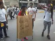 - ↑ "Jóvenes se encadenan en Altamira para exigir liberación de estudiantes (Fotos y video)". La Patilla. 20 December 2014. Retrieved 6 January 2015.