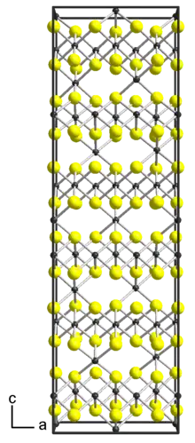 Titanium(III) sulfide is a black powder[1] that can also be crystalline or shiny.[2] The crystal has the nickel arsenide structure (hexagonal close-packed), with a coordination number of 6 for titanium.[1]