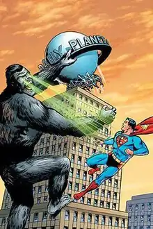 ![]() Titano attacking the Daily Planet building in the style of King Kong, from Showcase Presents Superman Volume 2 (2006). Art by Curt Swan and George Klein. | |