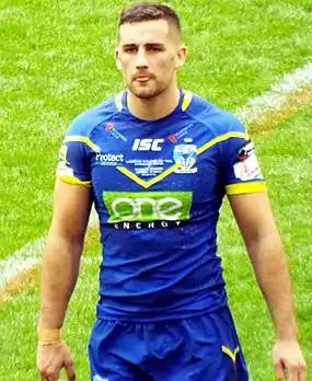 Toby King (born 9 July 1996)[2] is a professional rugby league footballer who plays as a centre for the Warrington Wolves. He has played for Ireland, England and the England Knights at international level.[5] He made his England debut on 29 April 2023 in the 64-0 victory over France at the Halliwell Jones Stadium