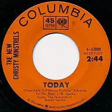 The final song on The New Christy Minstrels' May 1964 Columbia Records album Today,[4] the title track was released as the single Columbia 43000 with the B side "Miss Katy Cruel". The record peaked at No. 17 on the Billboard magazine "Hot 100" chart and No. 4 on the magazine's Adult Contemporary chart.[5][6]