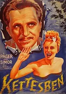 Together (Hungarian: Kettesben) is a 1943 Hungarian comedy film directed by László Cserépy and starring Antal Páger, Erzsi Simor and Károly Kovács.[1] [2] It was made at the Hunnia Studios in Budapest and on location around Győr.