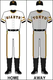 The Yomiuri Giants name and uniforms were based on the New York (now San Francisco) Giants. The team's colors (orange and black) are the same colors worn by the National League's Giants (both then as now in both New York and San Francisco). The stylized lettering on the team's jerseys and caps is similar to the fancy lettering used by the Giants when they played in New York in the 1930s, although during the 1970s the Yomiuri Giants modernized their lettering to follow the style worn by the San Francisco Giants.