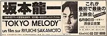 この卓越なプログラムを実現させた企画者及び映画館のBox東中野には、まず、心から敬意を表したいと思う。 [First of all, I would like to express my sincere respect to the organizers and the movie theater BOX Higashi-Nakano who made this outstanding program a reality.] - ↑ "Tonight! Tokyo Melody: a film about Ryuichi Sakamoto". Facebook. 24 September 2019. Archived from the original on 5 August 2023. Retrieved 5 August 2023.