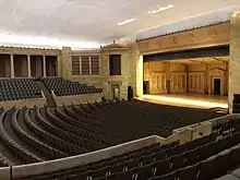 The Peristyle, a 1,750-seat concert hall in the east wing, is the principal concert space for the Toledo Symphony Orchestra and hosts the museum's Masters series. Added in 1933, it was designed in classical style to match the museum's exterior. Seating is divided into floor and riser seating, with the riser seating arranged in a half-circle, similar to a Greek theater. At the back of the riser seating are 28 Ionic columns that give the concert hall its name.