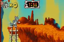 Infurnal Escape is a platformer in which players play as Tom and aim to escape from the underworld by completing stages and collecting golden bones and power-ups. Levels feature straightforward puzzles in which players press switches or use items such as TNT to open new paths in the level.[1] Players have nine lives to complete the game. If all lives are lost, players return to the underworld and can complete a minigame to recover three lives before restarting the level.[2] The game features fifteen levels across five environments, including the Underworld, Mansion, Circus, Mouseketeer and Boot Camp,[3] with backgrounds rendered from the original episodes of the Tom and Jerry cartoon.[4]