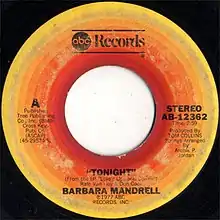 "Tonight" was released as a single on ABC Records in August 1977. It was backed on the B-side by the song "If I Were a River". The track was issued by the label as a seven inch vinyl single.[4] The single spent 13 weeks on America's Billboard country songs chart, peaking at number five by July 1978.[5] Outside of the country market, "Tonight" also charted on the Billboard Bubbling Under Hot 100 singles chart, peaking at number three on the survey in 1978.[6] In Canada, the single climbed to the number 25 position on the RPM country chart.[7] The song was released on Mandrell's fourth ABC studio album called Love's Ups and Downs.[8]