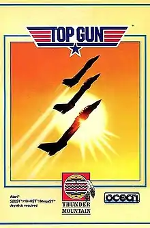 Top Gun is a 1986 combat flight simulation game based on the film of the same name. It was developed and published by British company Ocean Software, and was released for several computer platforms. In the United Kingdom, it was released for Amstrad CPC, Commodore 64, and ZX Spectrum in December 1986.[1][2][3] The following year, it was released for Atari ST.[4] In the United States, it was published by Thunder Mountain.[5] In 1989, it was published by The Hit Squad as a budget re-release for ZX Spectrum and Commodore 64.[6][7]