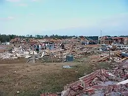 F4 damage to a subdivision of Madison, Mississippi, on November 24, 2001 (courtesy of NWS Jackson, Mississippi)