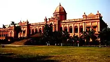 Tajhat Palace is a magnificent European-style palace located at Tajhat, Vicinity of Rangpur. It is located about three kilometers south east of the city center. Built by the Hindu Zamindar named Maharaja Kumar Gopal Lal roy in the early 20th century, it now symbolizes the history and culture of northern Bangladesh. At present the Palace is used as Rangpur Divisional Museum.[31]