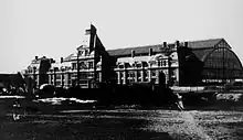The first train arrived there on 24 January 1842. A first neoclassical stone building dating from the 1840s was later dismantled and replaced to serve as the railway station of the town of Leuze-en-Hainaut.
