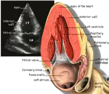 TTE in adults is also of limited use for the structures at the back of the heart, such as the left atrial appendage. Transesophageal echocardiography may be more accurate than TTE because it excludes the variables previously mentioned and allows closer visualization of common sites for vegetation and other abnormalities. Transesophageal Echocardiography also affords better visualization of prosthetic heart valves and clots within the four chambers of the heart. This type of Echocardiogram may be a better option for patients with thick chests, abnormal chest walls, chronic obstructive pulmonary disease and the obese. However, transthoracic is often superior to transesophageal for visualization of the apex of the left ventricle (e.g., left ventricular thrombus) and visualization of the ventricular size of mechanical valves.