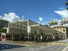 Between 2000 and 2002, a new bus station was constructed on the Piazzale Ex-Scuole in central Lugano for use by the TPL. The station was designed by the architect Mario Botta, and has a central, 7 metres (23 ft) high nave with two 5 metres (16 ft) high side aisles, with a translucent plexiglas covering.[12]