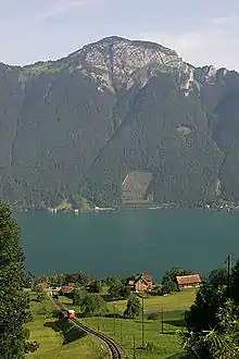 The Treib–Seelisberg railway (German: Treib–Seelisberg-Bahn; TSB) is a funicular railway in the canton of Uri, Switzerland. The line links Treib, on Lake Lucerne, with Seelisberg on the mountain 330 m above. At Treib the funicular connects with regular passenger boats of the Schifffahrtsgesellschaft des Vierwaldstättersees, which connect it to Lucerne and other lakeside communities.[1]