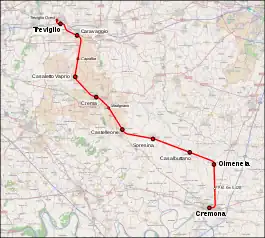 The Treviglio–Cremona railway is a railway line in Lombardy, Italy.